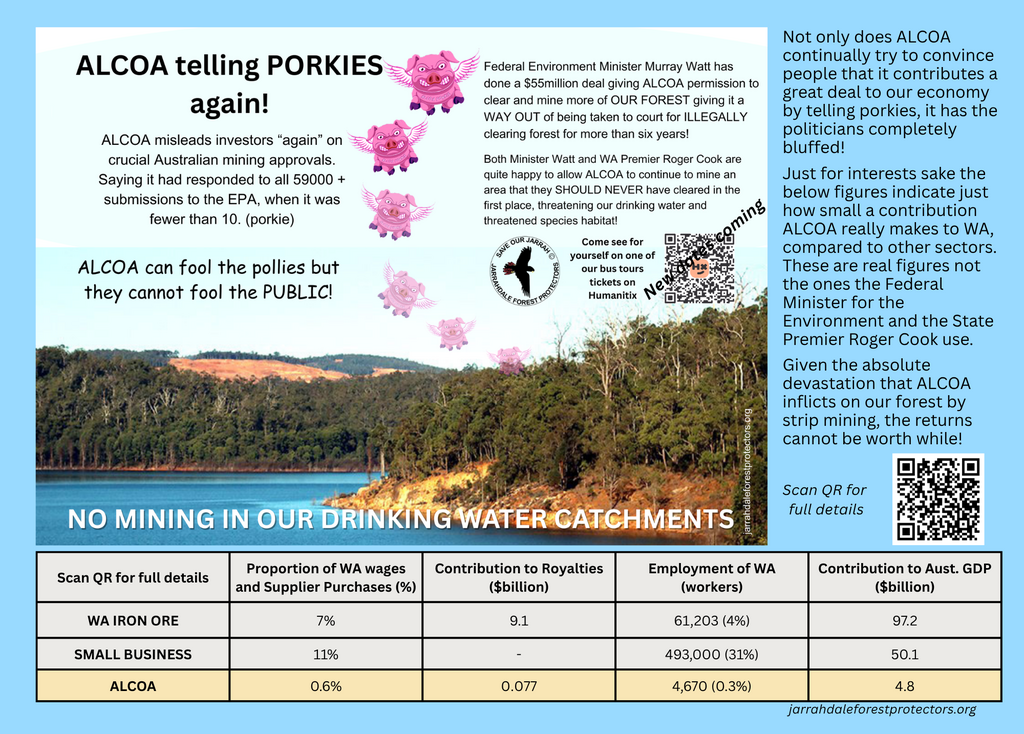 How do they think they can ever get to NET ZERO while they sanction the clearing of Australian forests? Premier Roger Cook has now been joined by Minister Murray Watt in orchestrating the further destruction of the Northern Jarrah Forest envrionment by making a DEAL with ALCOA to continue to strip mine an area that ALCOA have illegally cleared! All ALCOA have to do is further fund things that it is ALREADY funding!